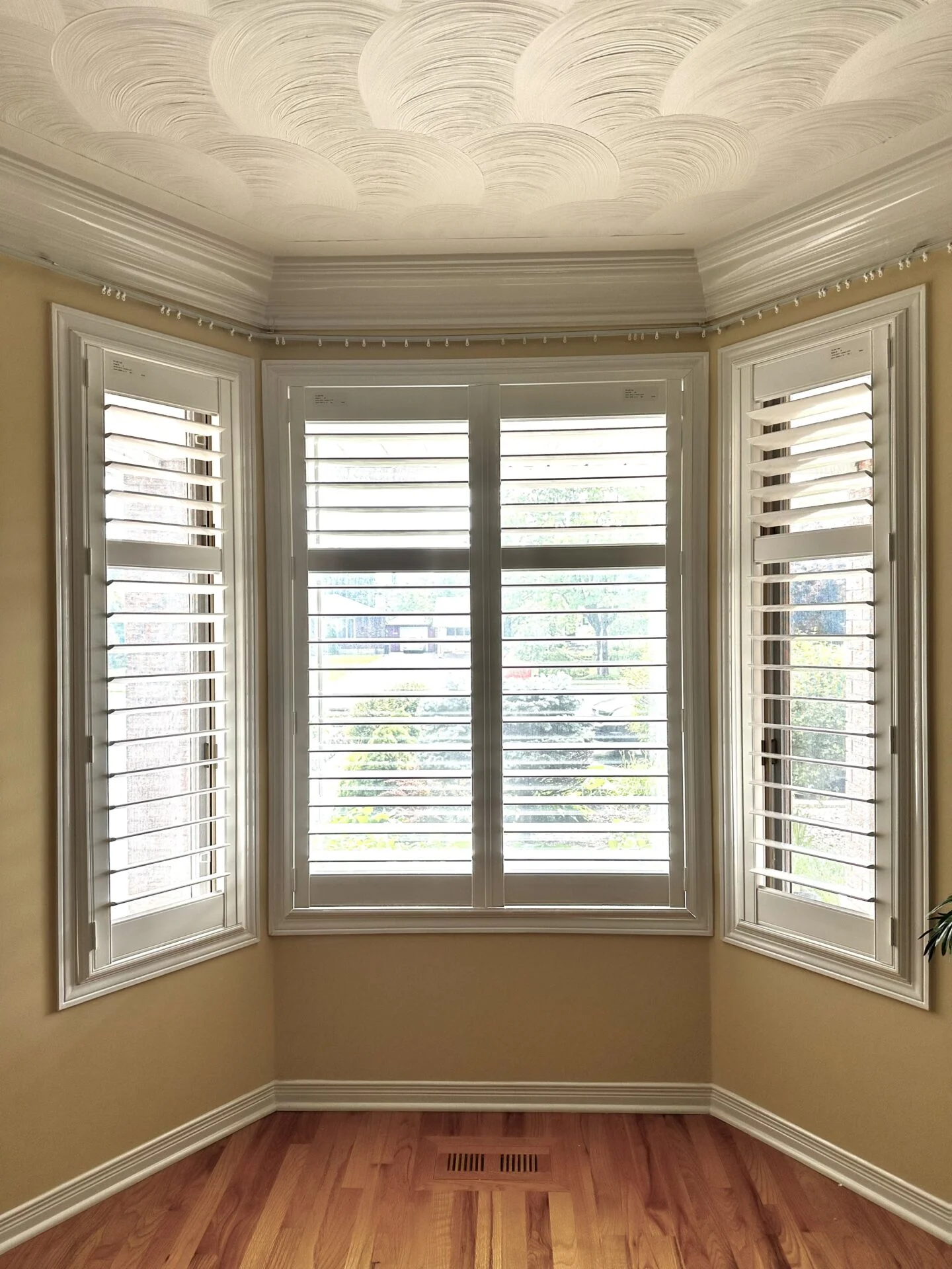 Personalized design on rod placement and louvres 2.5”, 3.5” and 4.5” sizes, modern with a distinctive touch for different window styles.